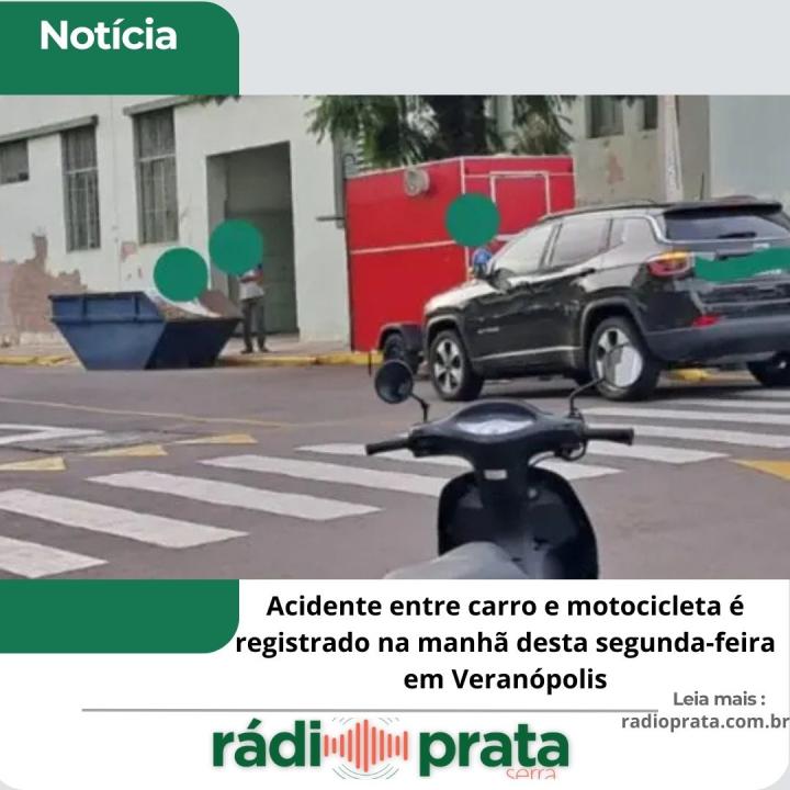Acidente entre carro e motocicleta é registrado na manhã desta segunda-feira em Veranópolis